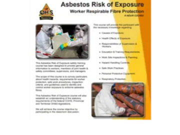 This Asbestos Risk of Exposure safety training course has been designed to provide general information to workers, members of joint health & safety committees, supervisors, and managers.
