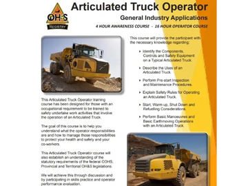 This Articulated Truck Operator training course has been designed for those with an occupational requirement to be trained to safely undertake work activities that involve the operation of an Articulated Truck.