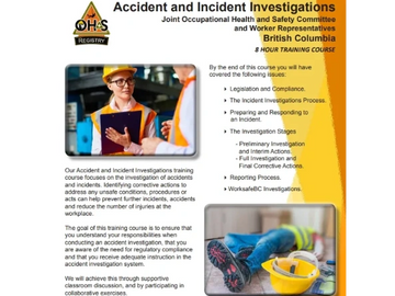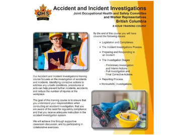 Our Accident and Incident Investigations training course focuses on the investigation of accidents and incidents. Identifying corrective actions to address any unsafe conditions, procedures or acts can help prevent further incidents, accidents and reduce the number of injuries at the workplace.