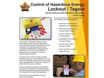 This Control of Hazardous Energy Lockout Tagout safety course has been designed for those with an occupational requirement to safely undertake LOTO activities used during the servicing and maintenance of equipment and machinery. This course is also intended for personnel who are required to supervise Lockout Tagout operations.