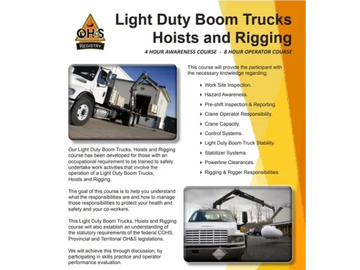 Our Light Duty Boom Trucks, Hoists and Rigging course has been developed for those with an occupational requirement to be trained to safely undertake work activities that involve the operation of a Light Duty Boom Trucks, Hoists and Rigging.