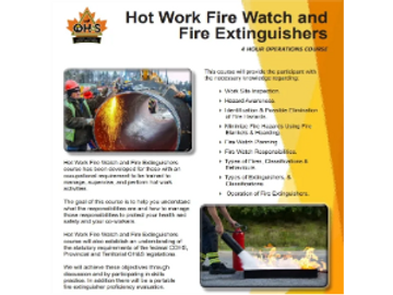 Hot Work Fire Watch and Fire Extinguishers course has been developed for those with an occupational requirement to be trained to manage, supervise, and perform hot work activities. This course also covers the safe use of fire extinguishers with a practical assessment.