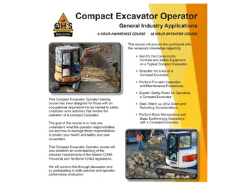 This Compact Excavator Operator training course has been designed for those with an occupational requirement to be trained to safely undertake work activities that involve the operation of a Compact Excavator.