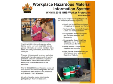 The WHMIS 2015 Worker Protection safety training course has been designed to provide general information to workers, members of joint health and safety committees, supervisors, and managers.