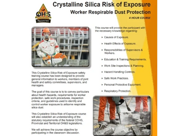 This Crystalline Silica Risk of Exposure safety training course has been designed to provide general information to workers, members of joint health and safety committees, supervisors, and managers.